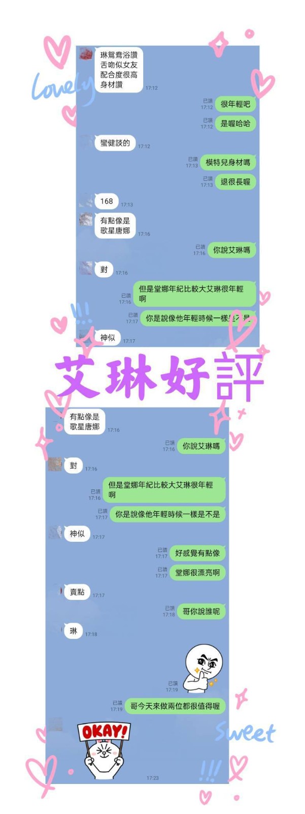 ♥艾琳: 青春美少女   漂亮精緻臉蛋   模特兒身材   迷人電眼   溫柔甜美    女友fu    九頭身   小蠻腰    修長挺直美腿    配合度高    老點多  可獨龍   口爆+500,舌吻,69,無膜吹,殘廢澡,2S+500,品鮑,奶炮 ,漫遊   雙飛   無膜做+1000內射   2+1(送30分)   3+1(送60分)   13:00~21:00♥ 可外約
