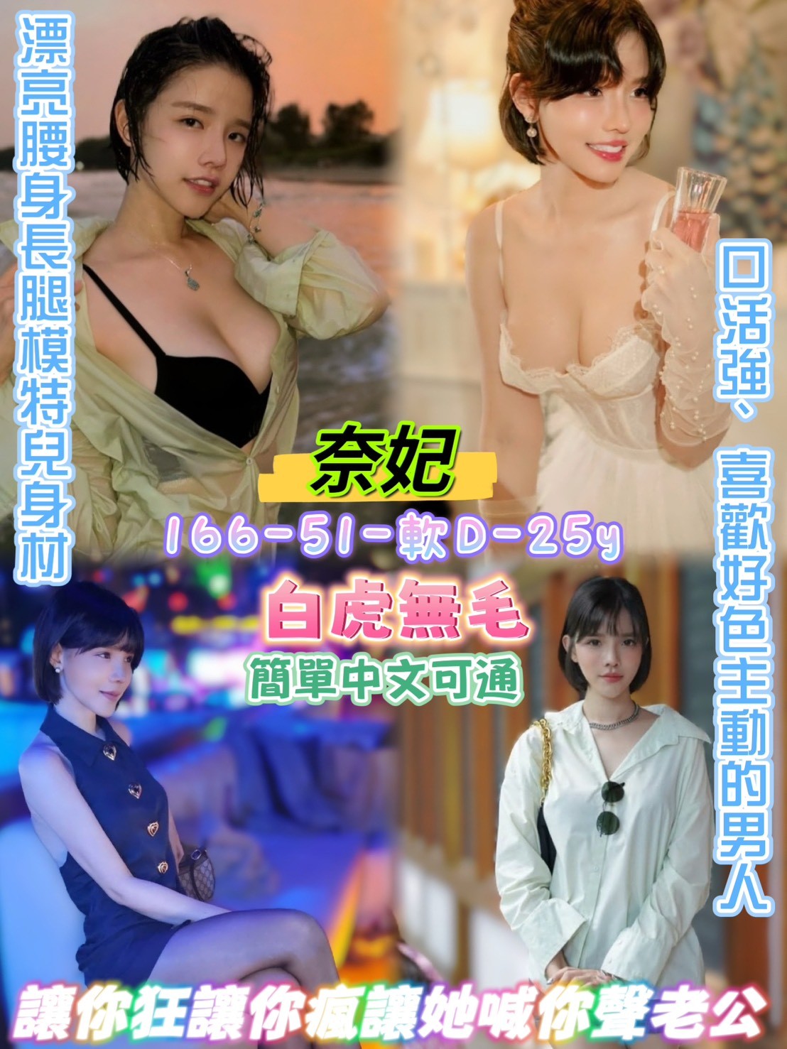 膚白滑嫩、騷底、口活強