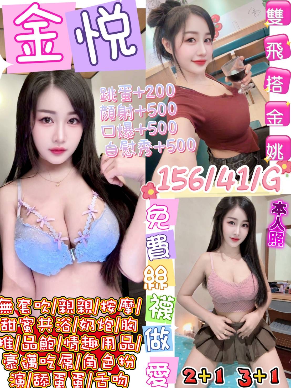 👍項目:無套吹/甜蜜共浴/按摩/角色扮演/親親/69/品鮑/胸推/屁推/舔蛋蛋/毒龍/奶炮/舌吻
