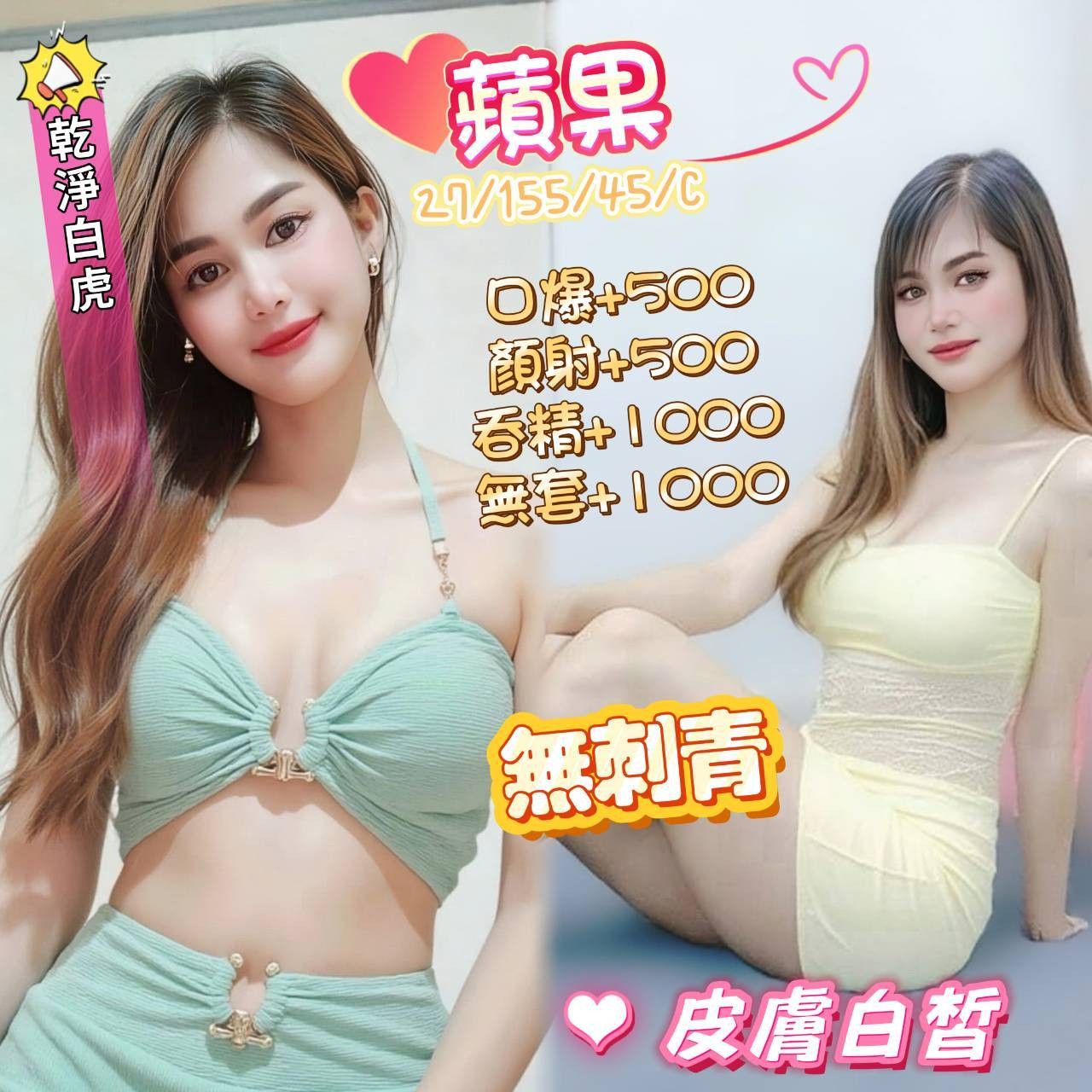 2S+500,顏射+500,口爆+500,吞精+1000,無套做+1000